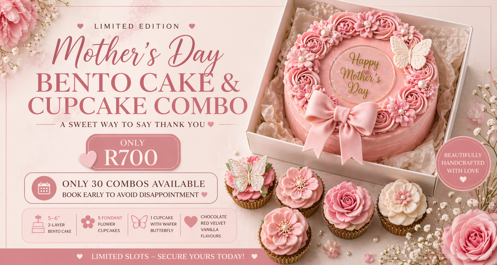 Celebrate Mom with something truly special this Mother’s Day. Our limited-edition Bento Cake & Cupcake Combo is designed in soft, elegant pink tones with delicate handcrafted details that make every set feel like a gift straight from the heart.